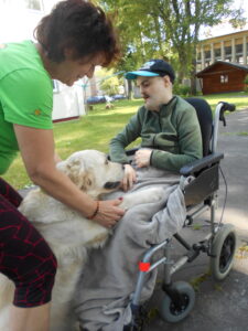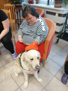 Paní Bc. Helena Fejkusová z organizace Podané ruce, z.s. v doprovodu nyní aktuálně s canisterapitickou fenkou zlatého retrívra Dorkou přistupuje k našim uživatelům s velkou mírou empatie i s ohledem na individuální možnosti a dovednosti jednotlivých klientů. Canisterapie je pro uživatele výborným stimulačním prvkem, který jim umožňuje lépe komunikovat s okolním světem.